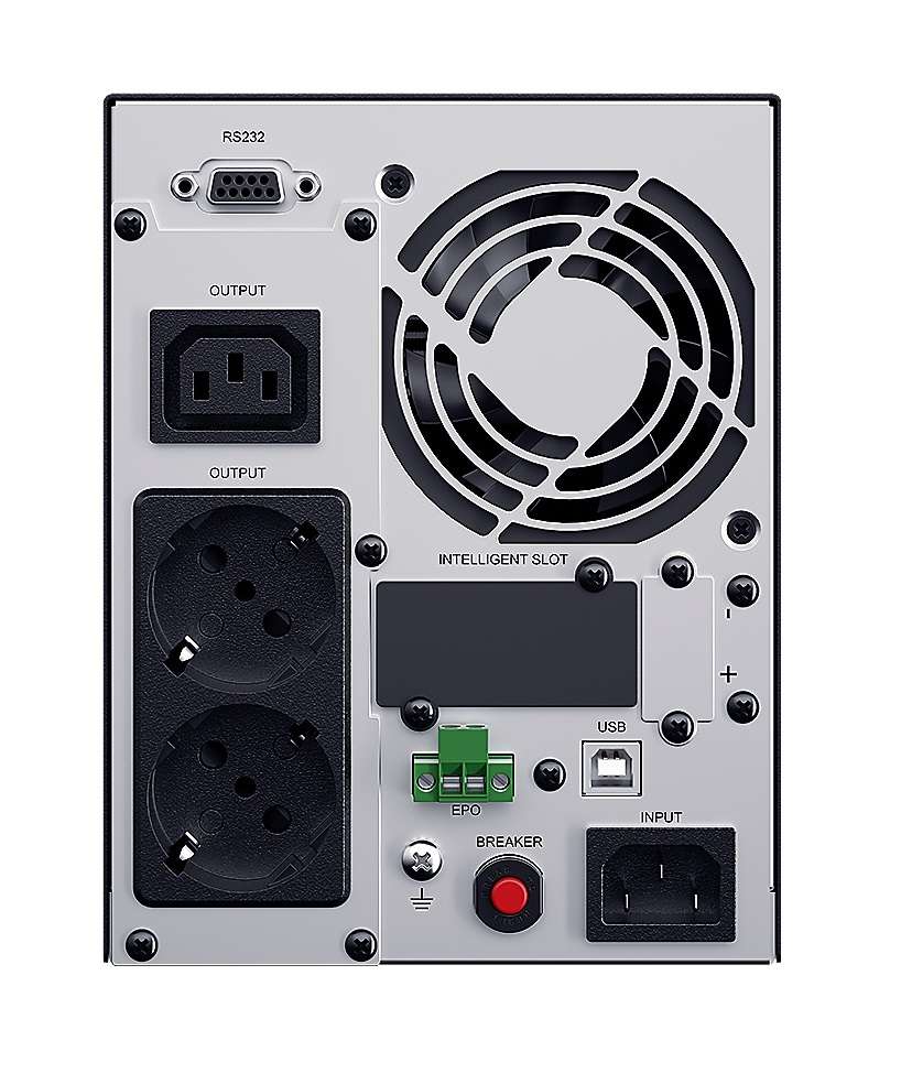 The UPS is designed with color LCD panel for users to monitor power system and configure settings easily. This model is generator compatible and also adopts ECO mode to conserve power. The product can be connected to Emergency Power Off (EPO) switch, which allows users to shut off UPS immediately during emergency. The variable speed fans provide automatic thermal management based on power load to reduce noise and provide greater comfort for users.