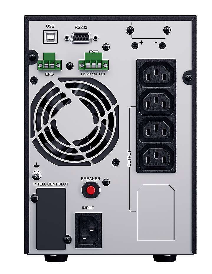 The UPS is designed with color LCD panel for users to monitor power system and configure settings easily. This model is generator compatible and also adopts ECO mode to conserve power. The product can be connected to Emergency Power Off (EPO) switch, which allows users to shut off UPS immediately during emergency. The variable speed fans provide automatic thermal management based on power load to reduce noise and provide greater comfort for users.